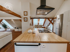 The apartment is located on Fráni Šrámka Street, in the very heart of the historic centre of the town of Písek. It is a top-floor (attic) apartment with a 3+kk layout, offering a total floor area of 190 sqm and a terrace of 8 sqm. The apartment is situated in a Renaissance building dating back to the 16th century, which forms part of the town’s protected heritage zone.